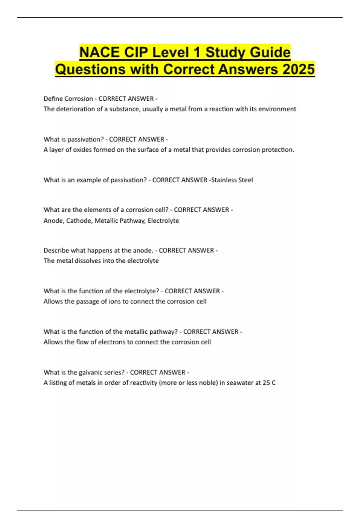 NACE CIP Level 1 Study Guide Questions with Correct Answers 2025