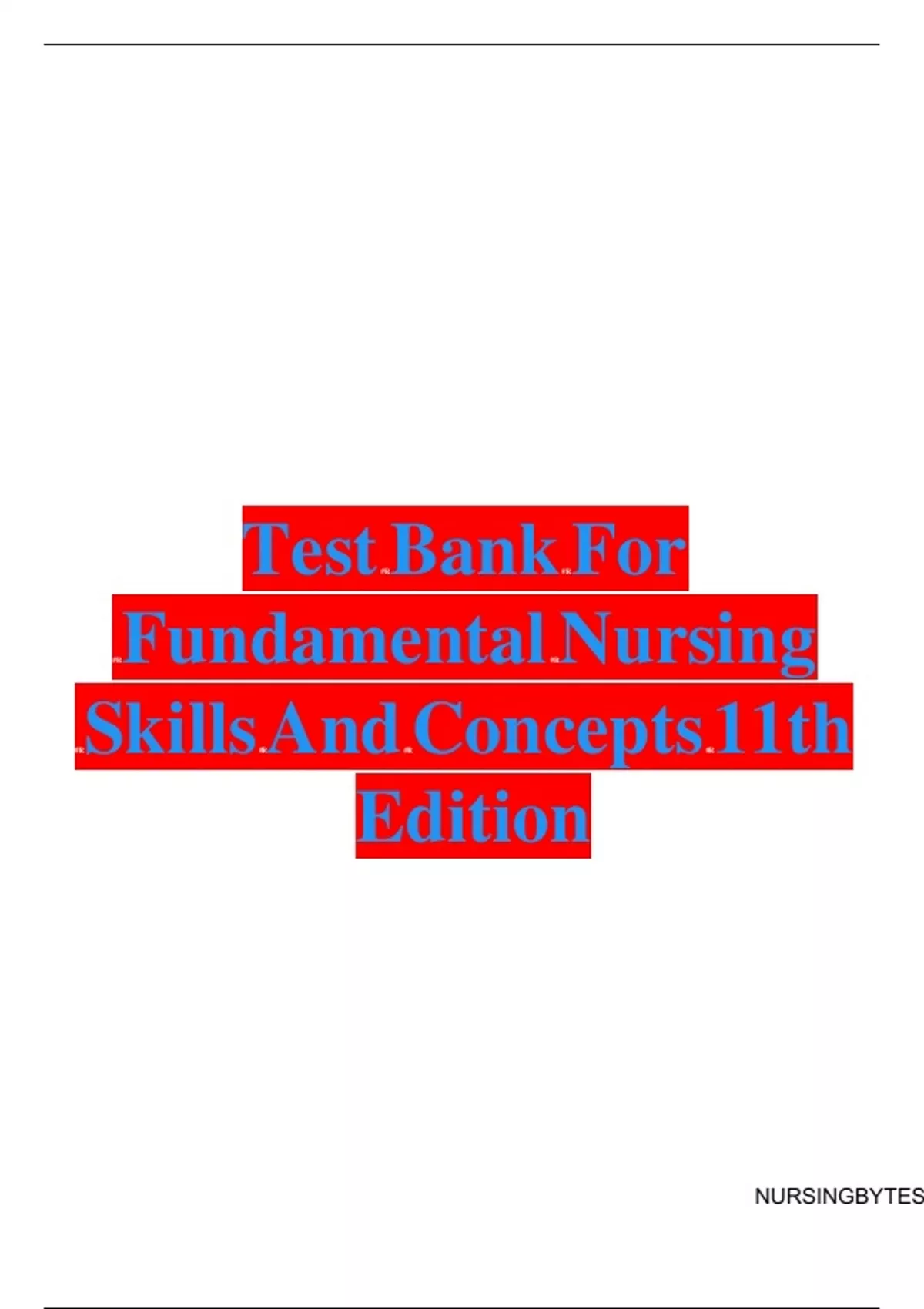 TEST BANK FUNDAMENTAL NURSING SKILLS AND CONCEPTS 11TH EDITION ISBN: 9781496327628 ALL CHAPTERS COVERED GRADED A+ NEWEST VERSION.