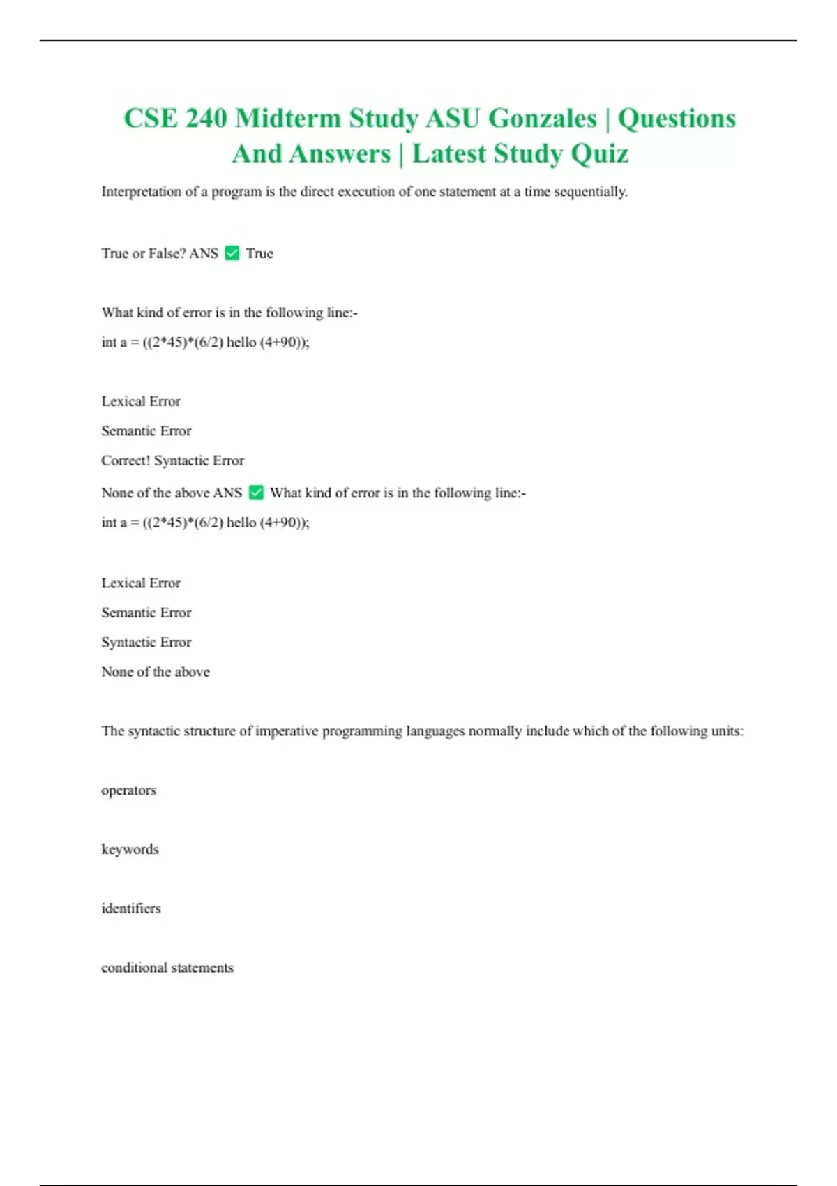 Correct! Syntactic Error