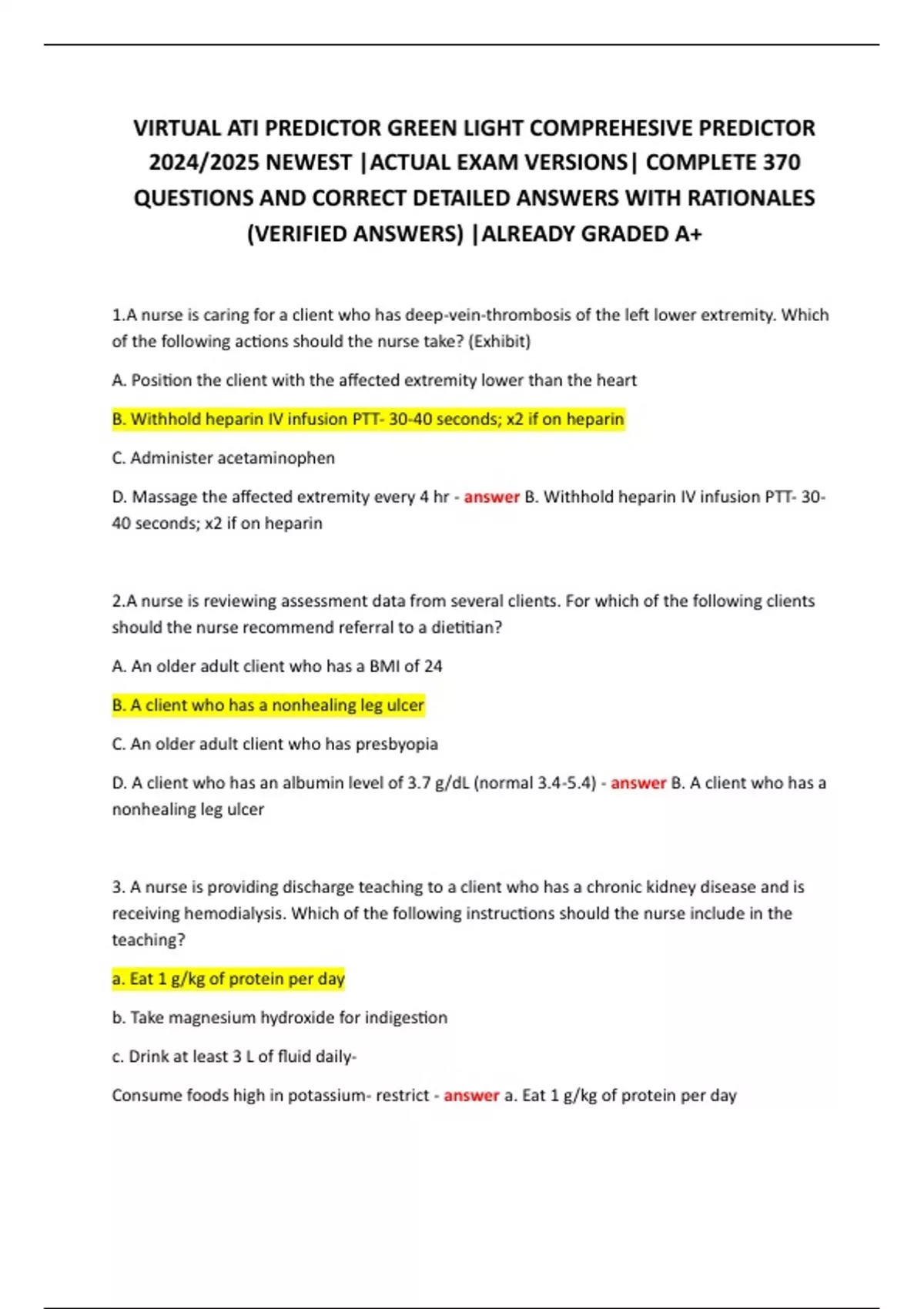 QUESTIONS AND CORRECT DETAILED ANSWERS WITH RATIONALES
