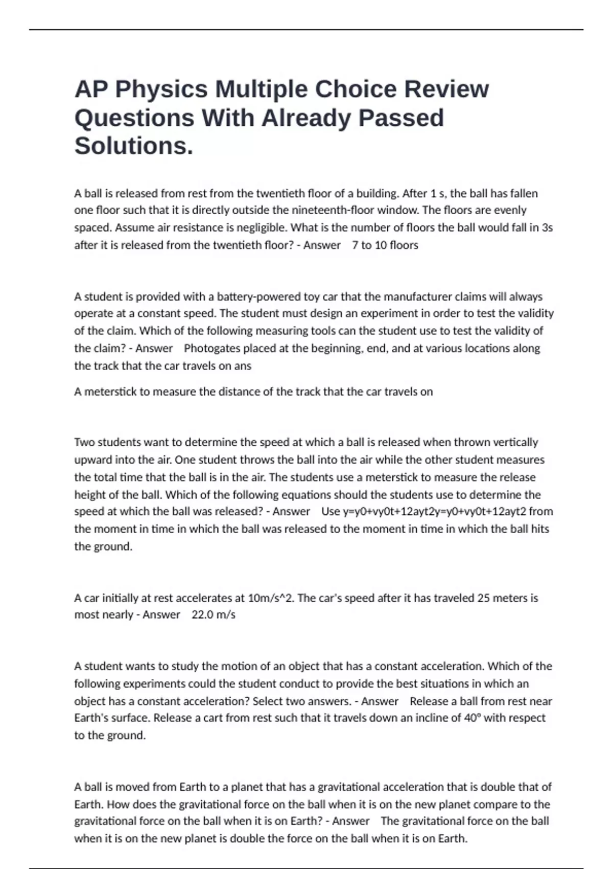 AP Physics Multiple Choice Review Questions With Already Passed Solutions.
