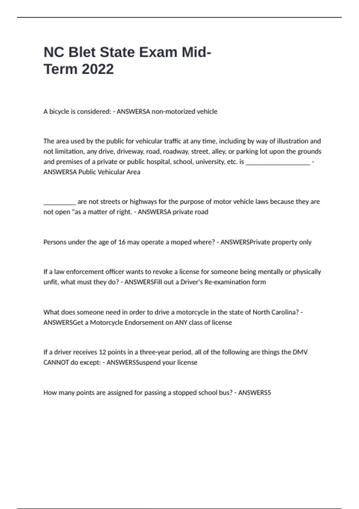 A bicycle is considered: - ANSWERSA non-motorized vehicle