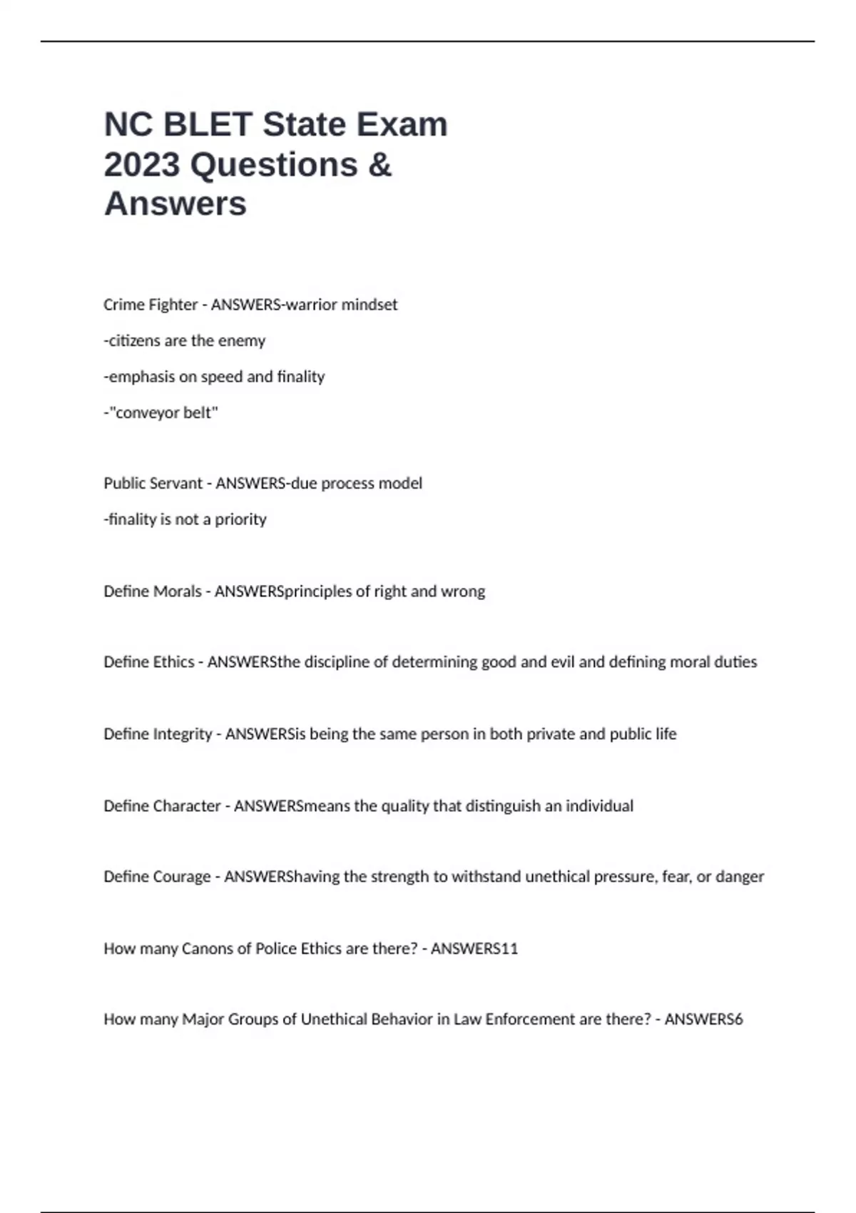 Crime Fighter - ANSWERS-warrior mindset