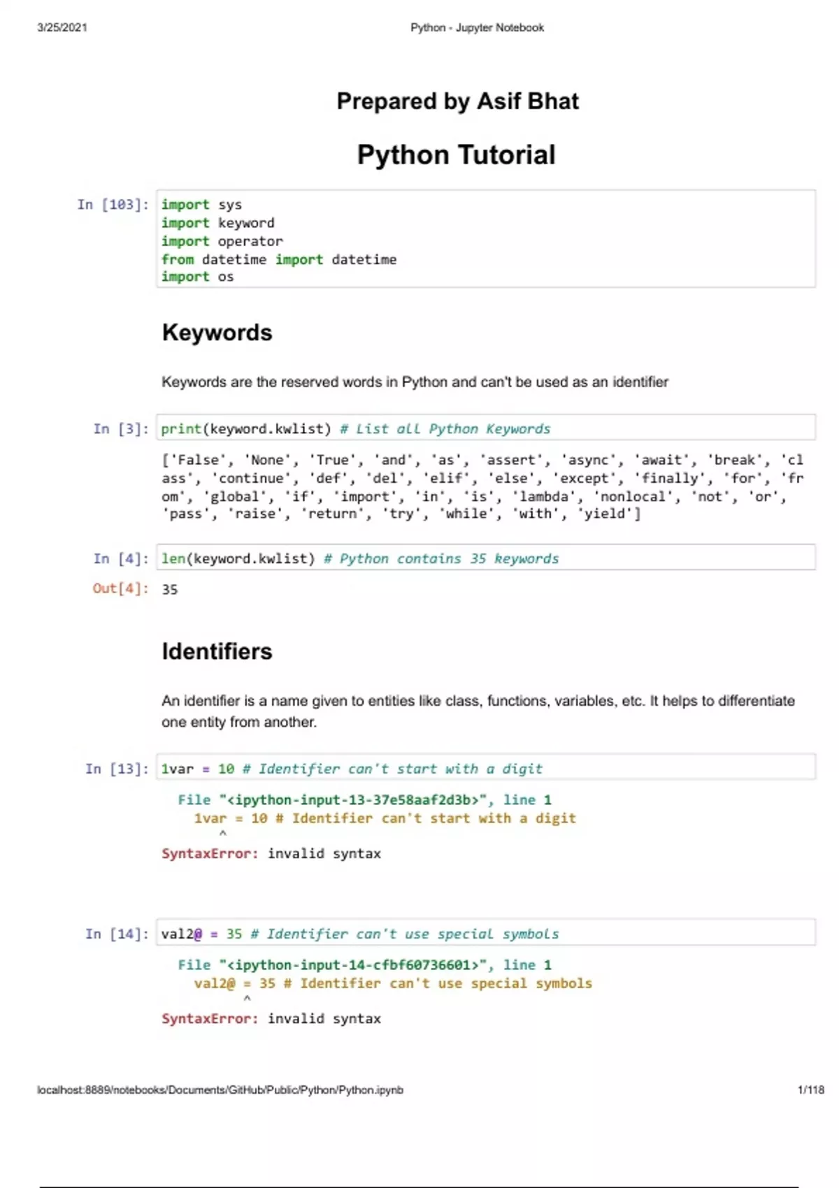 In [3]: print(keyword.kwlist) # List all Python Keywords