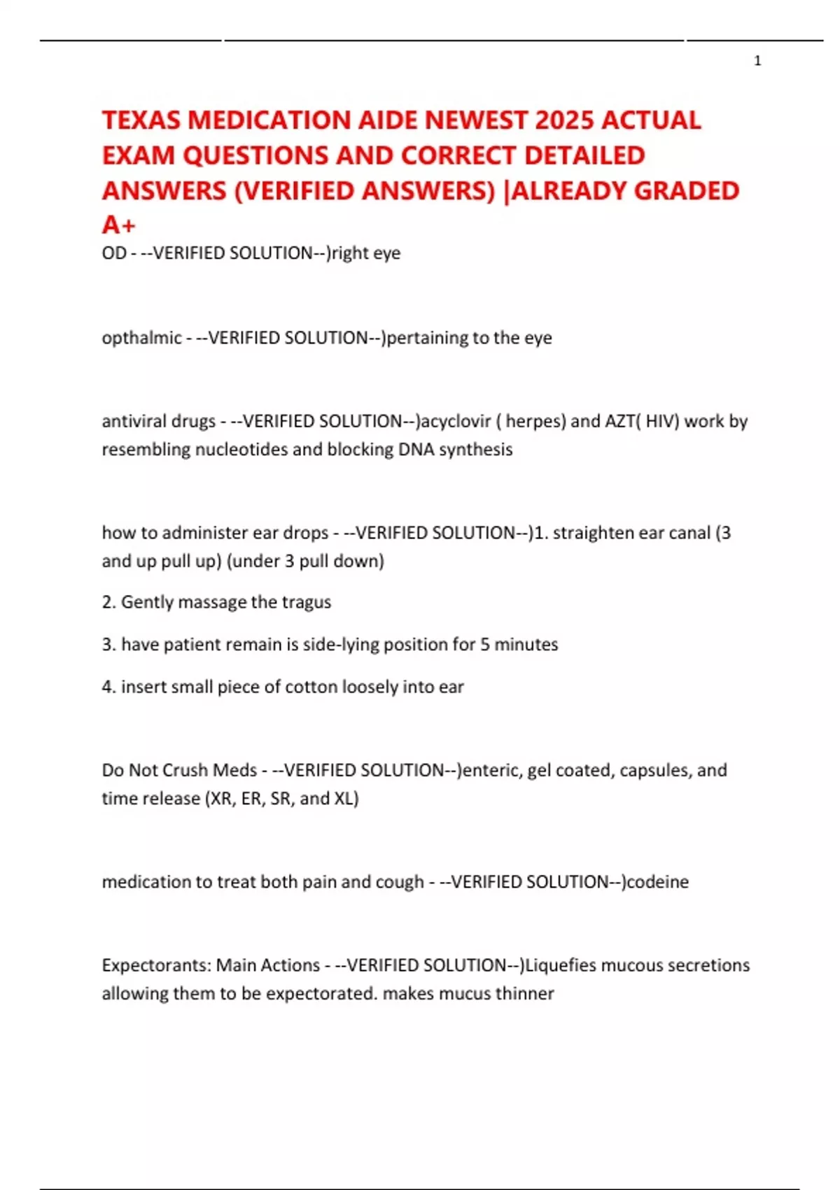 Texas Medication Aide, 2025 exam questions, verified answers, medication aide test, detailed solutions, nursing aide exam, medication administration, state exam prep, healthcare certification, aide test review