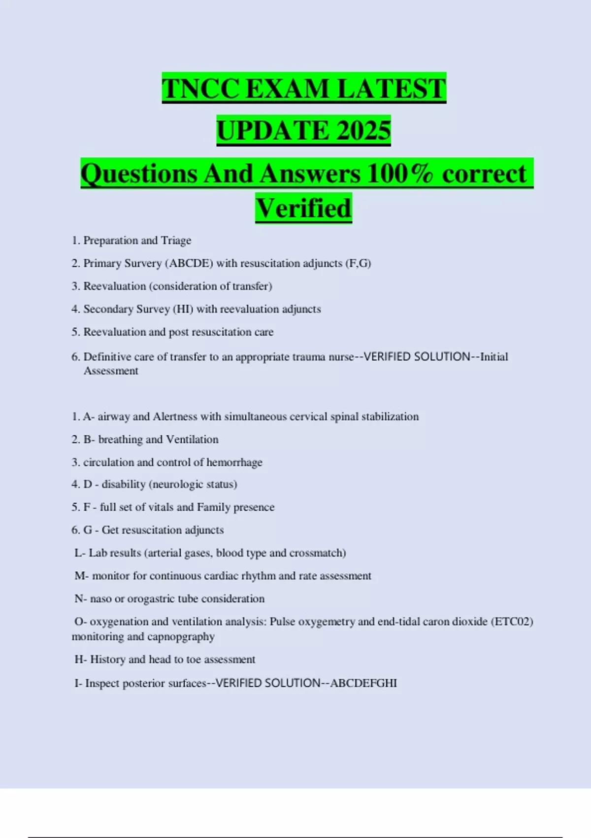 TNCC EXAM LATEST
