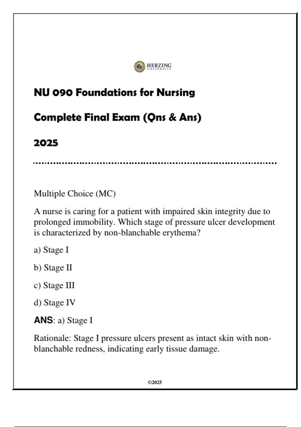 Rationale: Stage I pressure ulcers present as intact skin with non-
