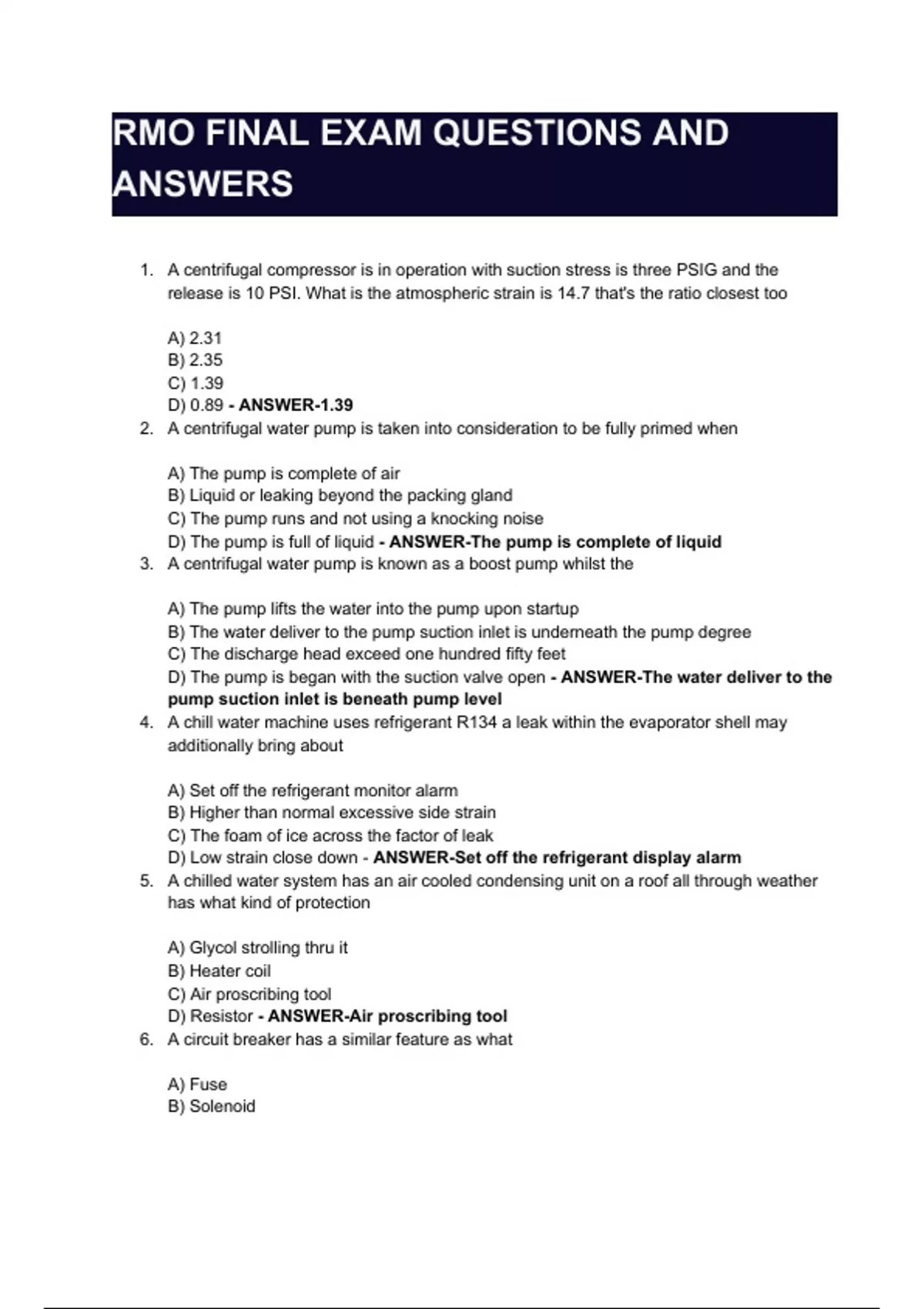 RMO FINAL EXAM QUESTIONS AND ANSWERS 100% VERIFIED FOR A GUARANTEED PASS
