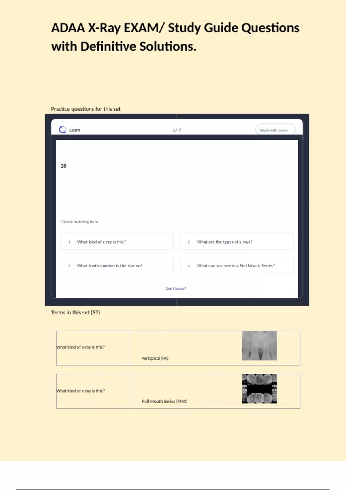 ADAA X-Ray EXAM/ Study Guide Questions with Definitive Solutions.