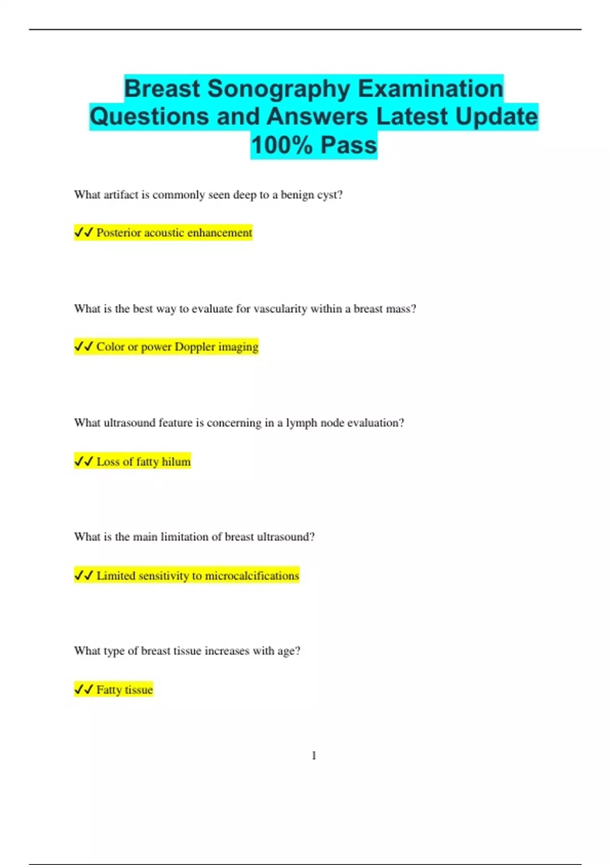 Breast Sonography Examination Questions and Answers Latest Update 100% Pass
