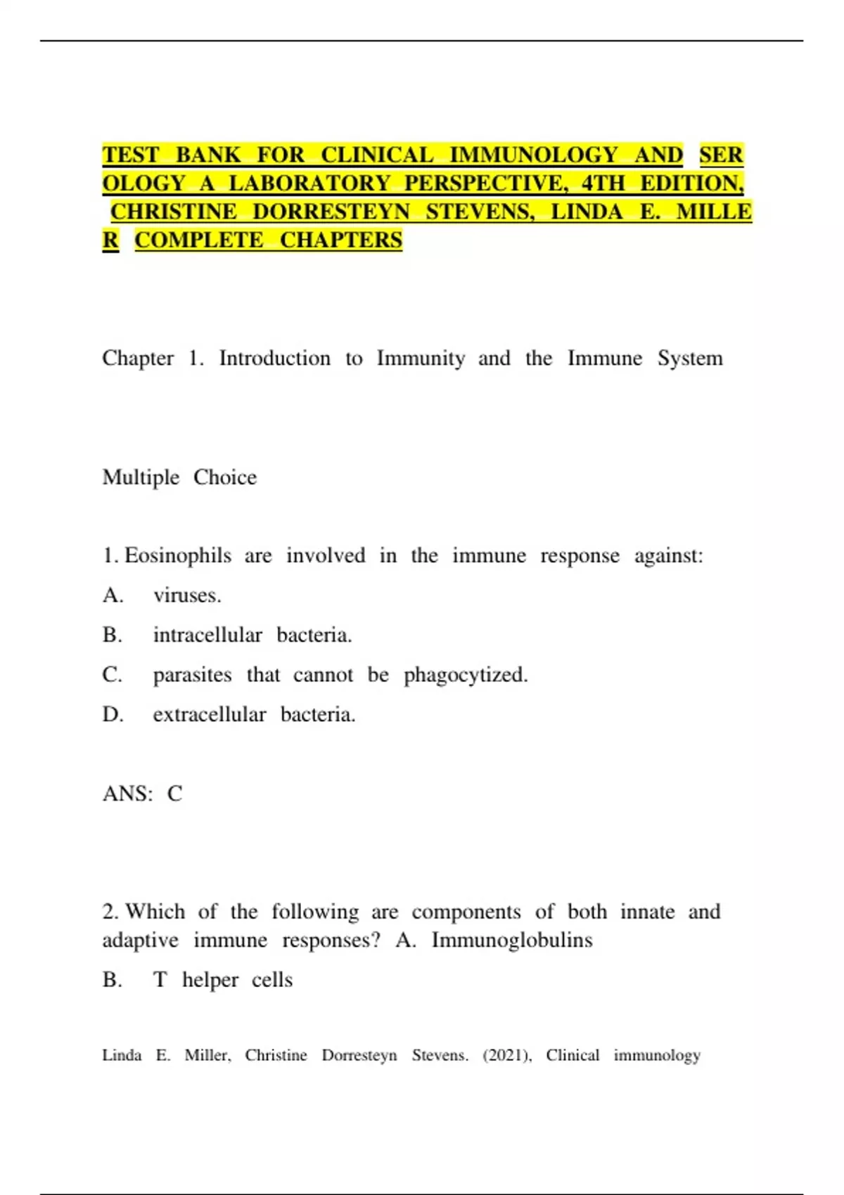 TEST BANK FOR CLINICAL IMMUNOLOGY AND SER