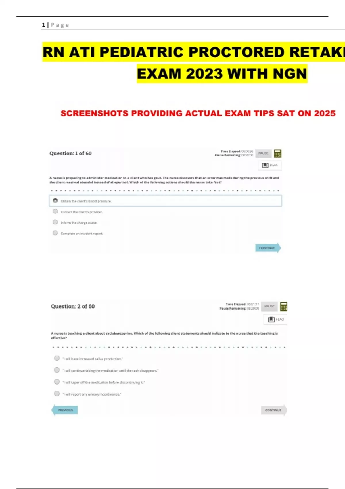 Retake version of the ATI RN Pediatric Proctored Exam 2023 featuring NGN-style questions and updated exam content.
