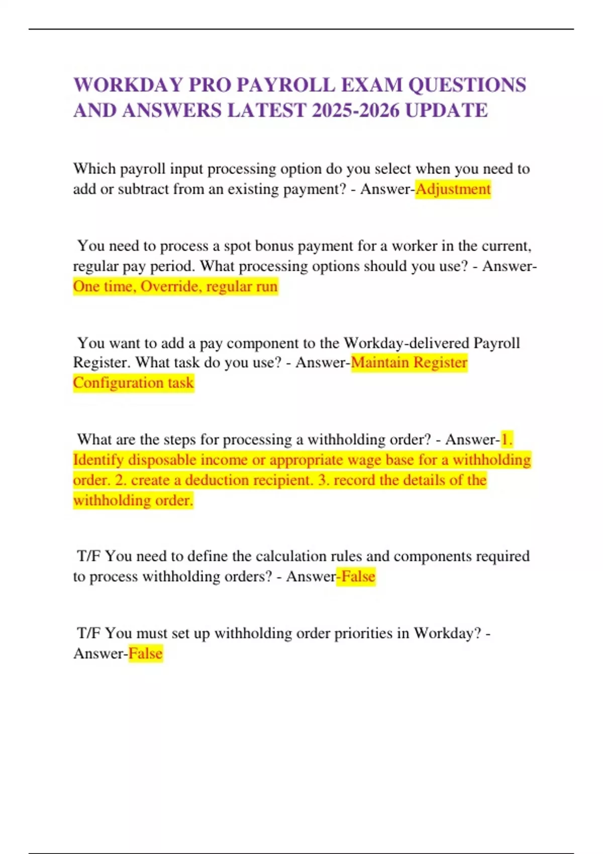 WORKDAY PRO PAYROLL EXAM QUESTIONS