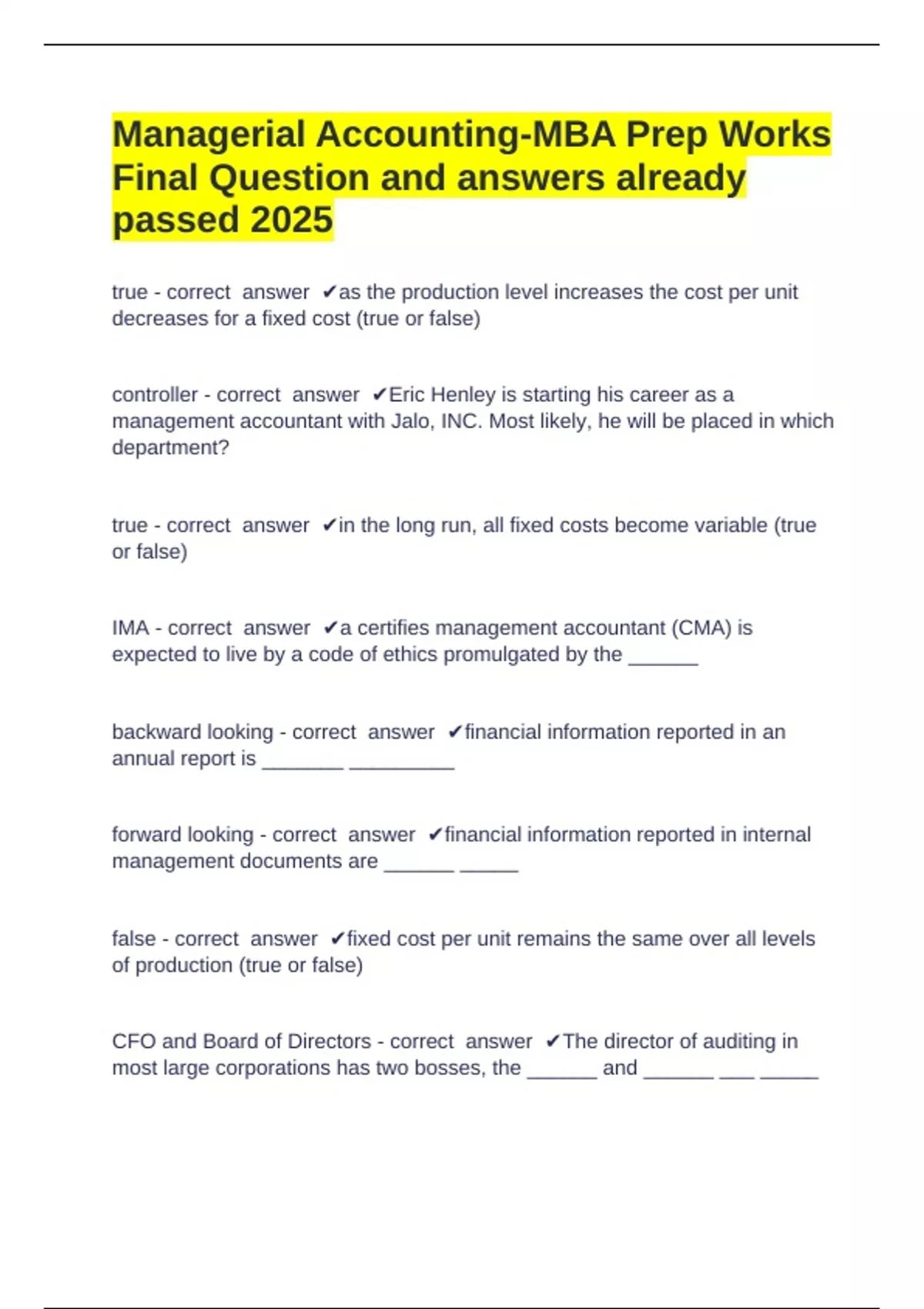 IMA - correct answer ✔a certifies management accountant (CMA) is