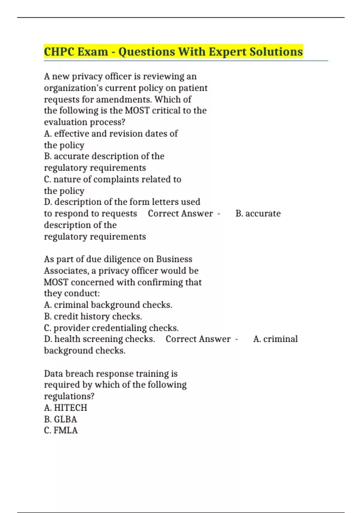CHPC Exam - Questions With Expert Solutions