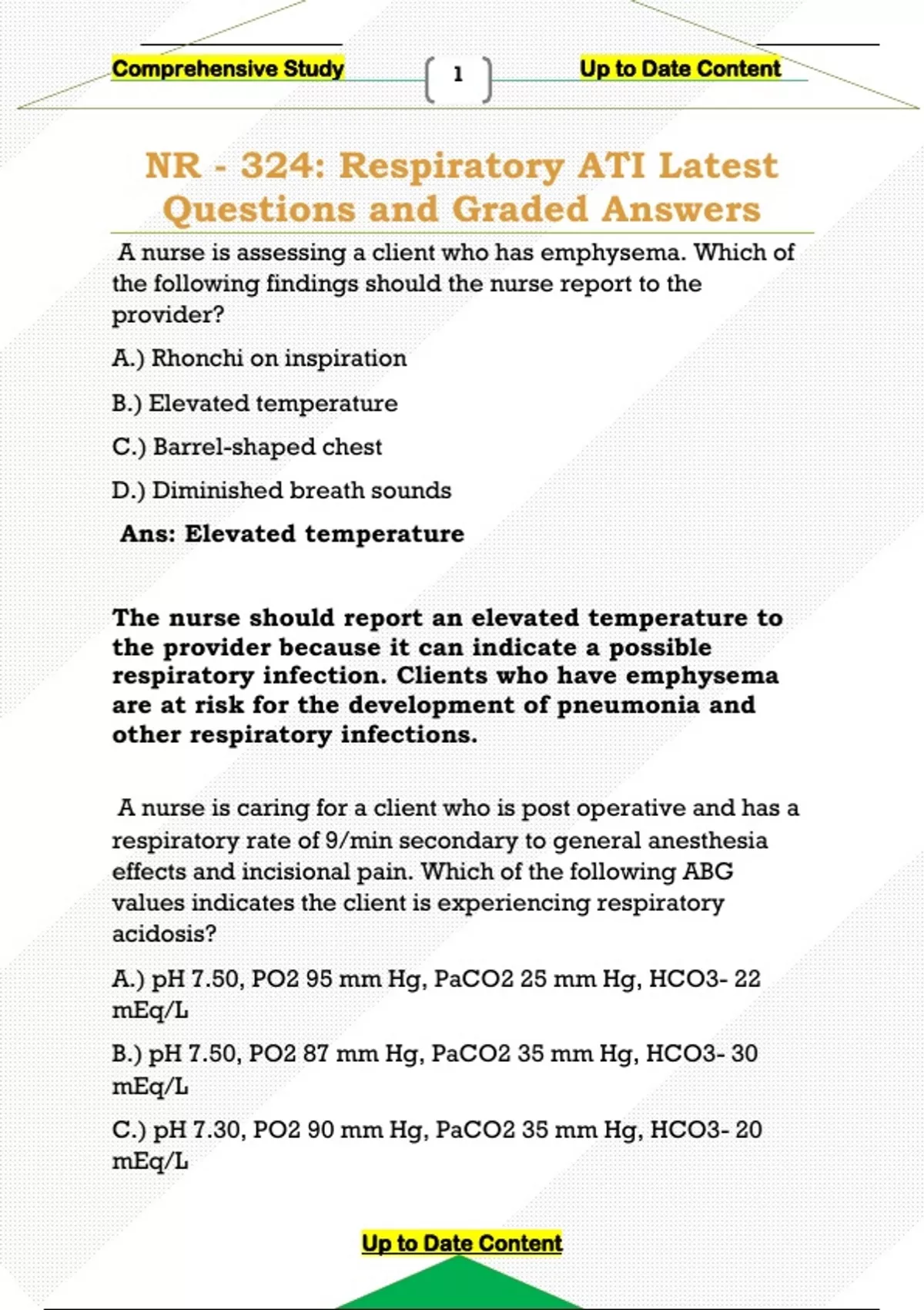Ans: pH 7.30, PO2 80 mm Hg, PaCO2 55 mm Hg,