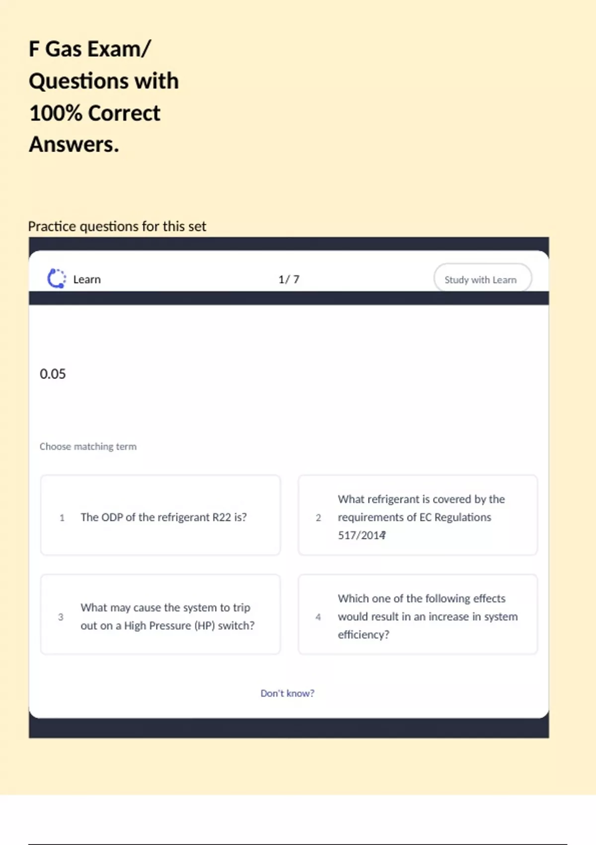 F Gas Exam/ Questions with 100% Correct Answers.