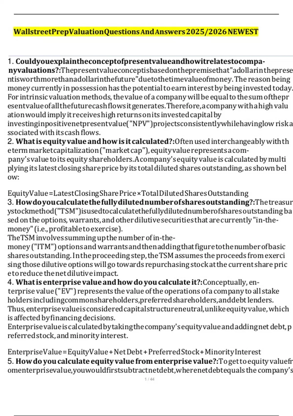 Il`Il`Il`Il`Il`Il`Il`Il`Il`Il`Il`Il`Il`Il` WallstreetPrepValuationQuestions And Answers 2025/2026 NEWEST Il̀ Il̀ Il̀ Il` Il` Il` Il`