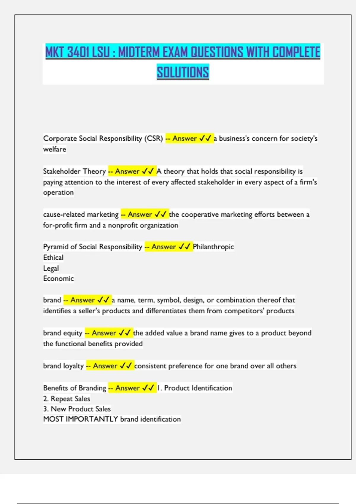 MKT 3401 LSU : MIDTERM EXAM QUESTIONS WITH COMPLETE
