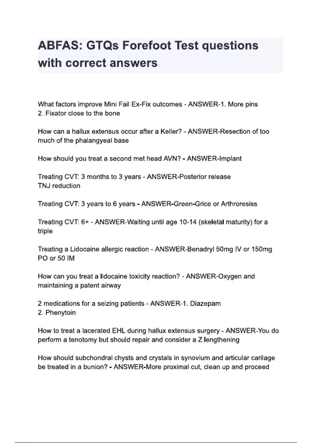 ABFAS GTQs Forefoot Test questions with correct answers.
