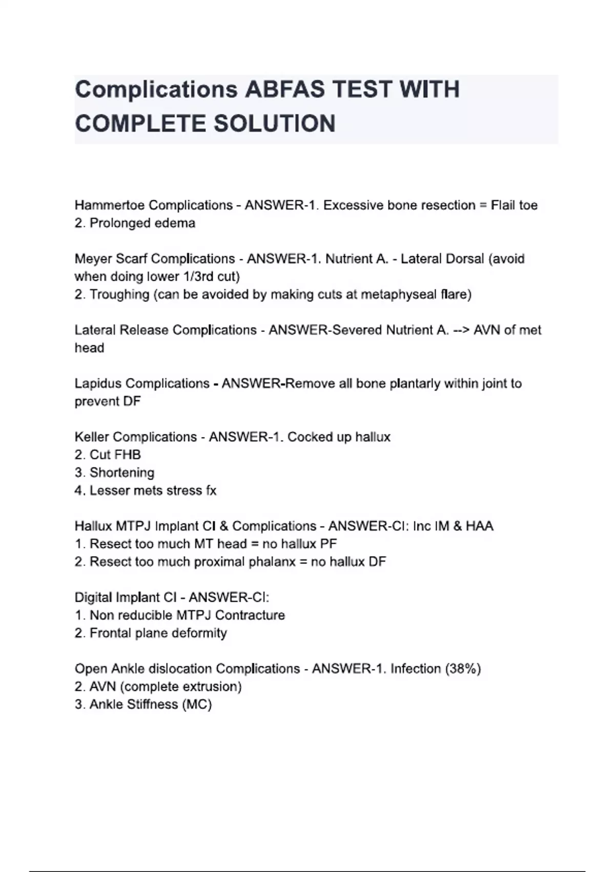 Complications ABFAS TEST WITH COMPLETE SOLUTION