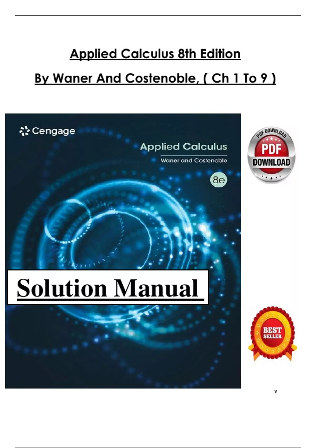 Solutions manual for Applied Calculus, 8th Edition by Waner verified chapters 1 - 9 questions with complete solutions.