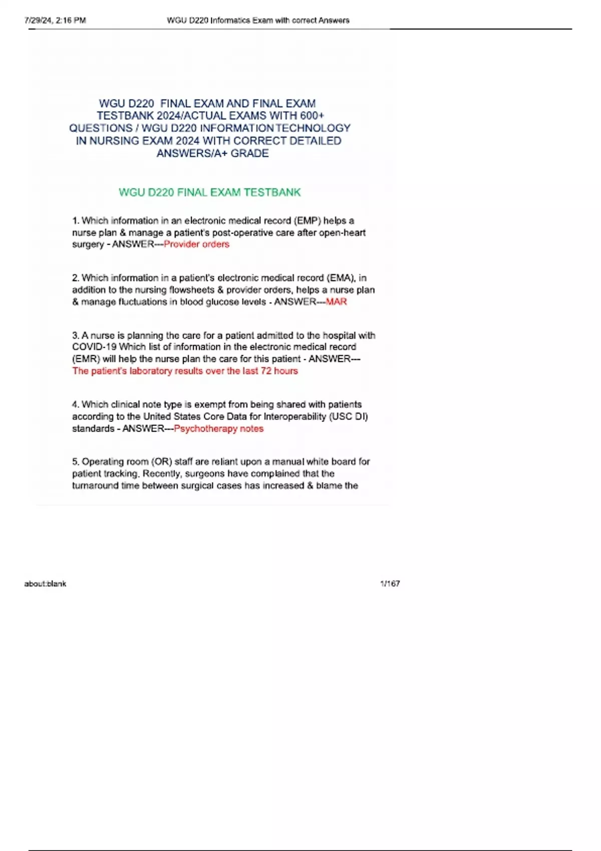 Wgu d220 informatics exam with correct answersd