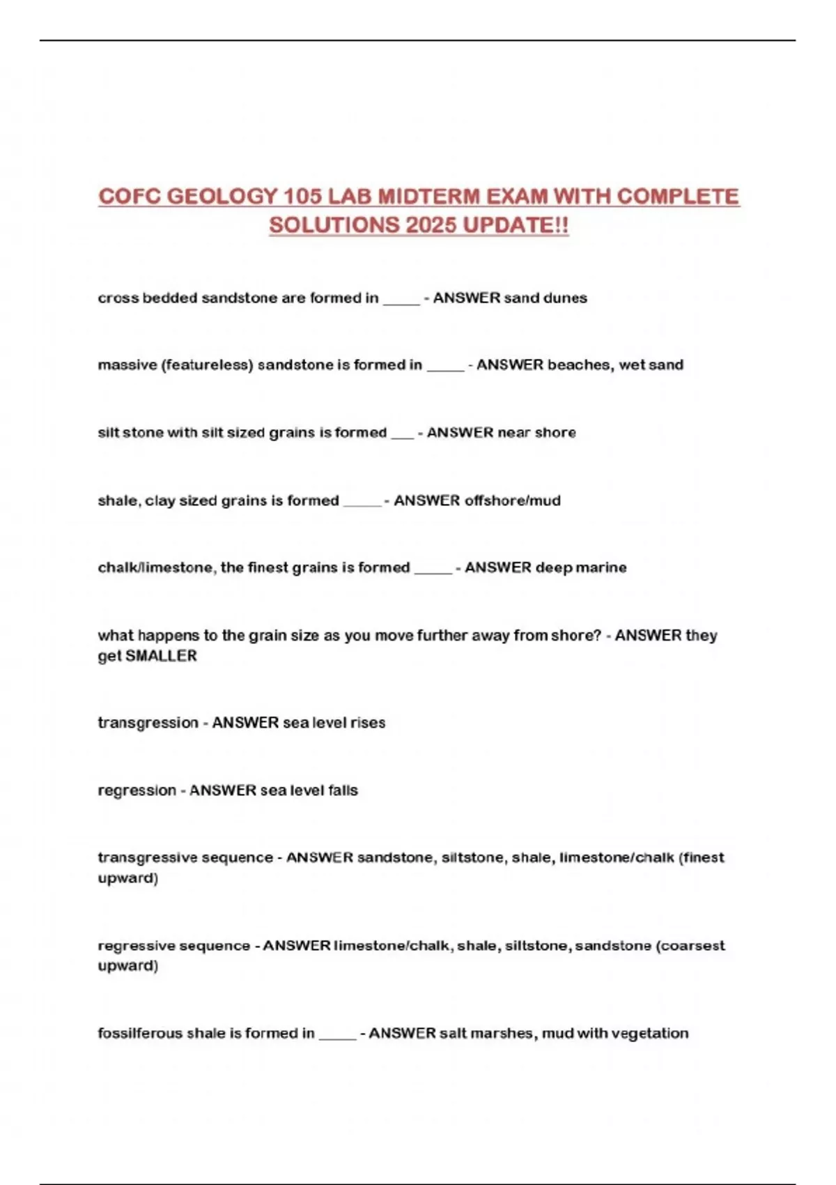 COFC GEOLOGY 105 LAB MIDTERM EXAM WITH COMPLETE SOLUTIONS 2025 UPDATE!!...