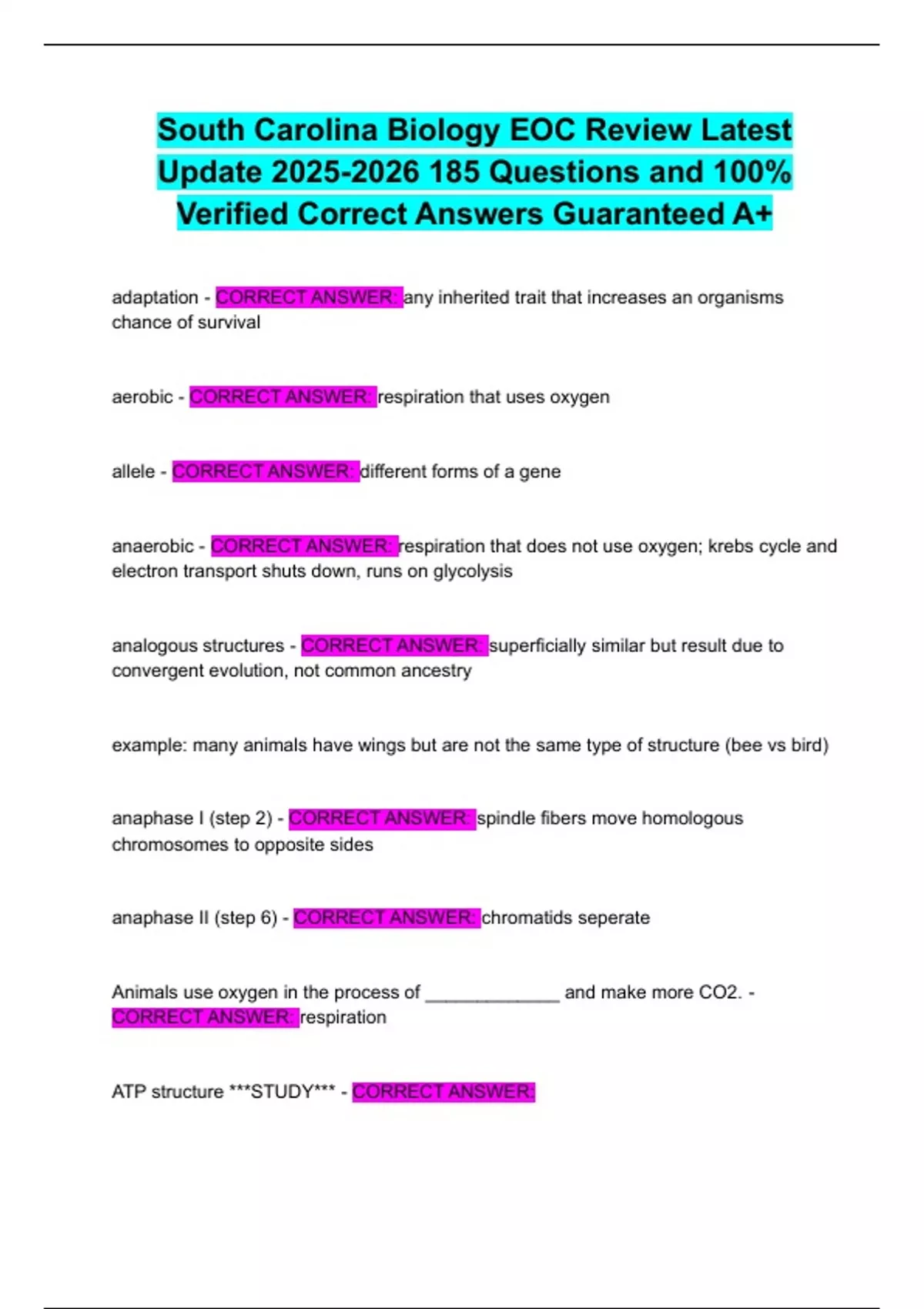aerobic - CORRECT ANSWER: respiration that uses oxygen