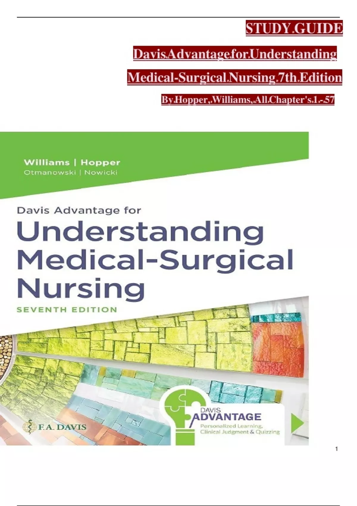 ,(Davis l# Advantage l # for l# Understanding l # Medical-Surgical l# Nursing, l# 7e l# Linda l # Williams, l# Paula l # Hopper)