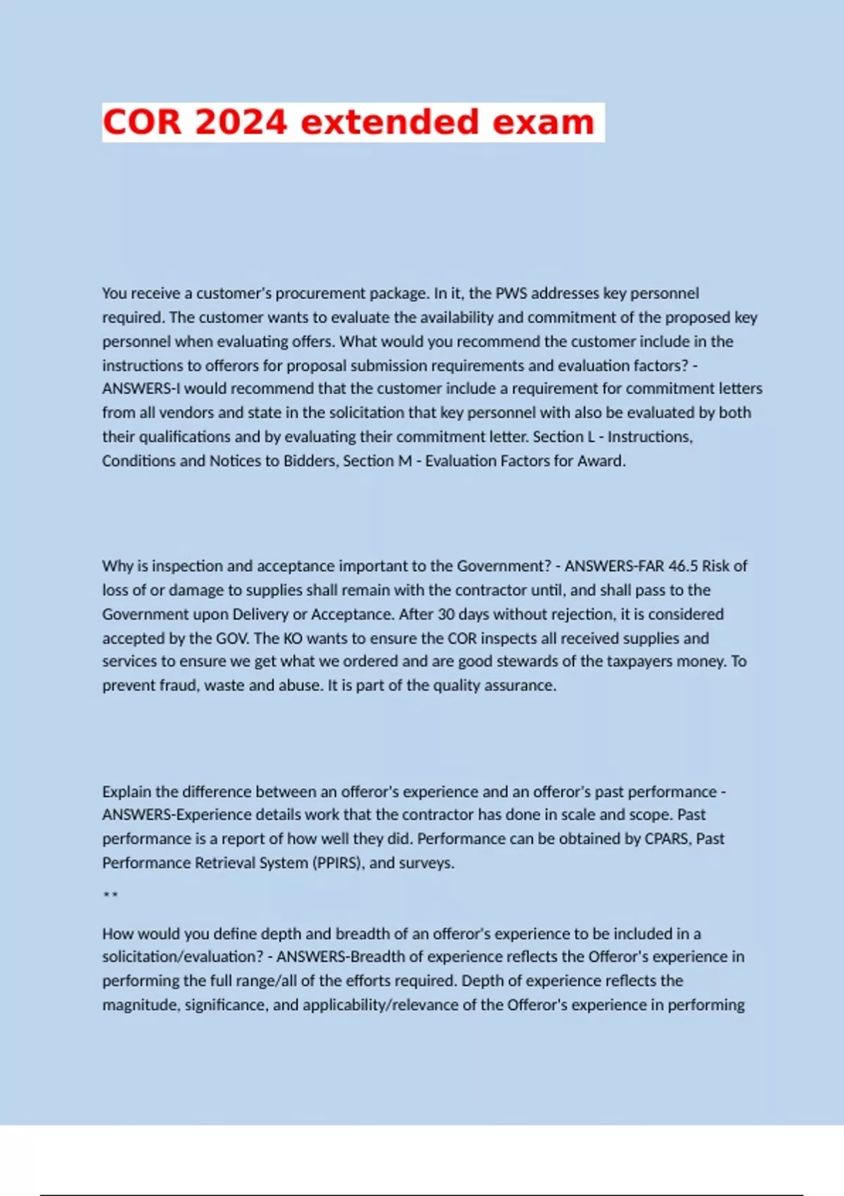 ANSWERS-Experience details work that the contractor has done in scale and scope. Past