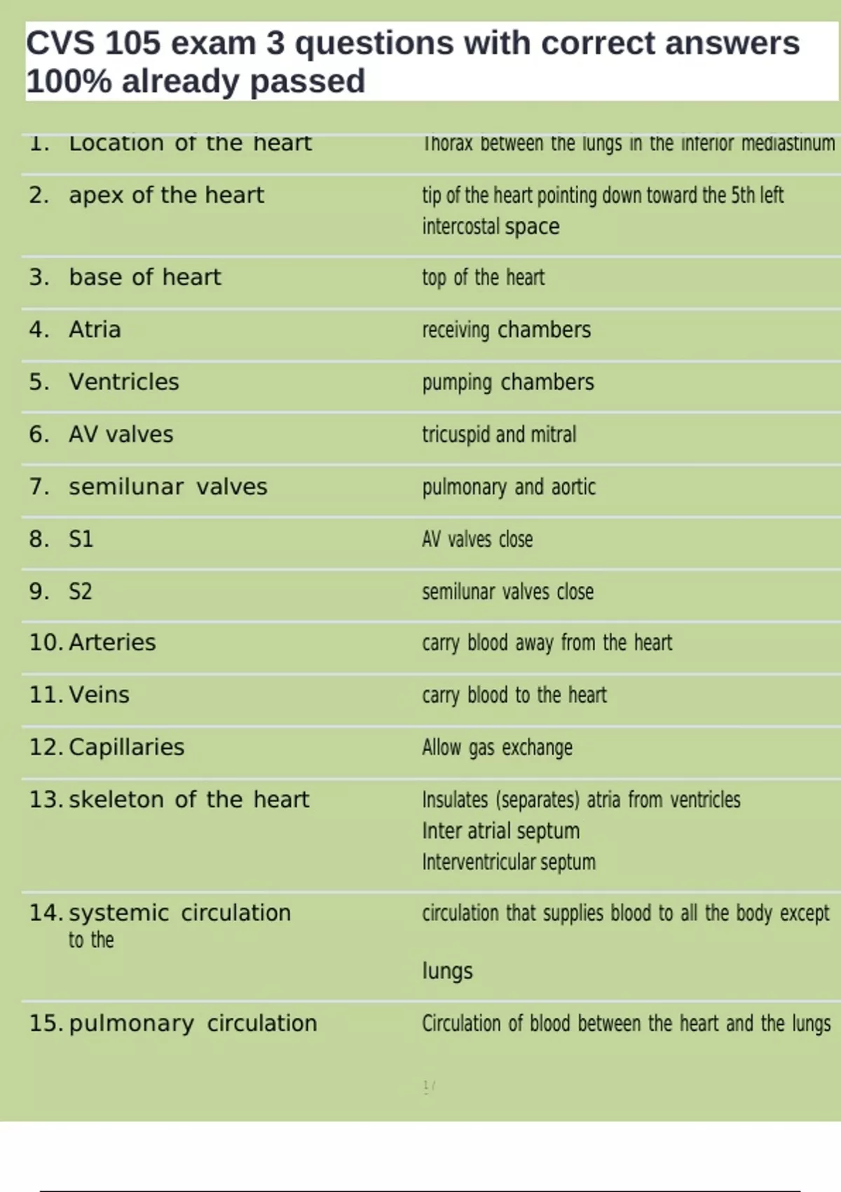 15. pulmonary circulation Circulation of blood between the heart and the lungs