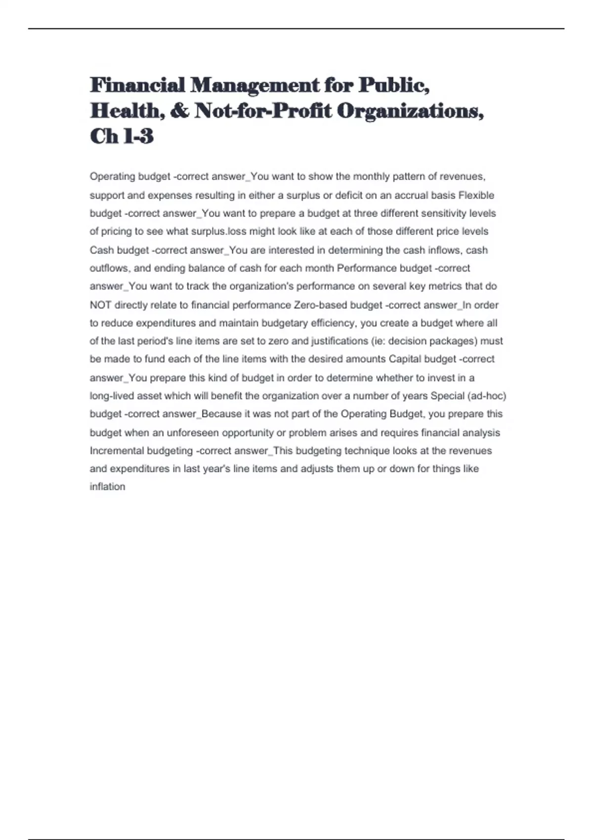Incremental budgeting -correct answer_This budgeting technique looks at the revenues