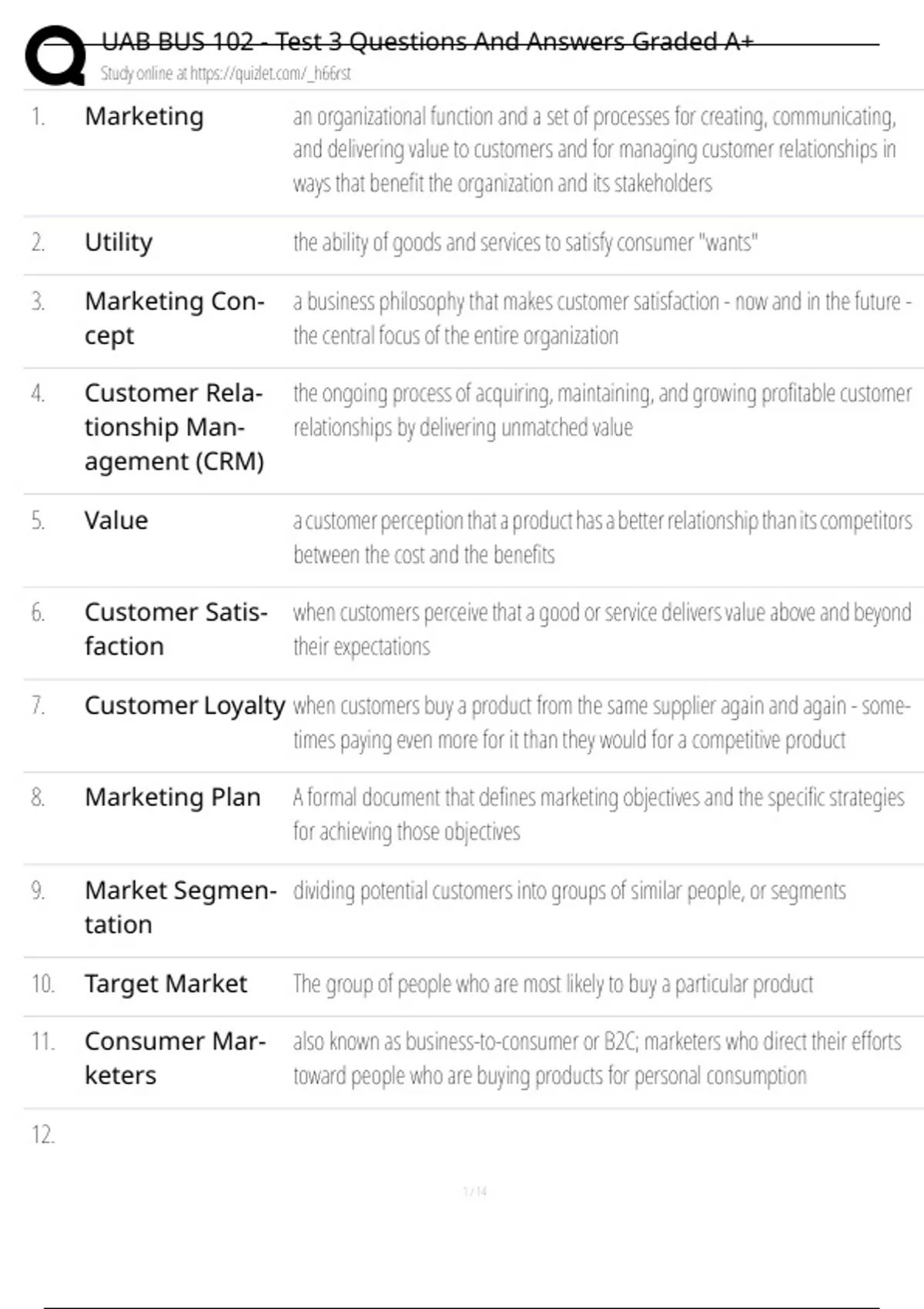 UAB BUS 102 - Test 3 Questions And Answers Graded A+