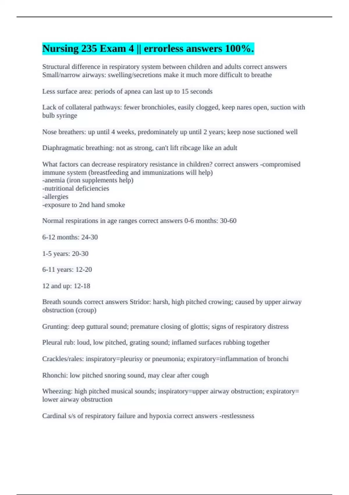 Breath sounds correct answers Stridor: harsh, high pitched crowing; caused by upper airway