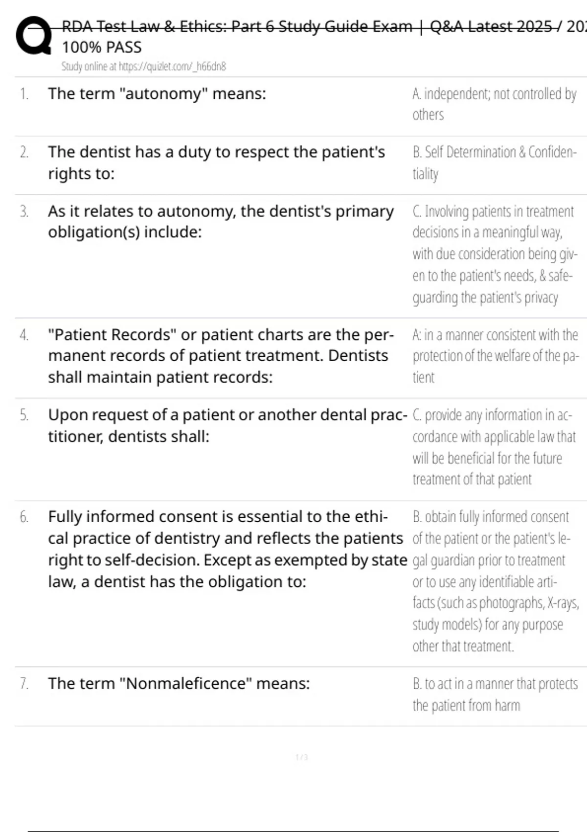 RDA Test Law & Ethics: Part 6 Study Guide Exam | Q&A Latest