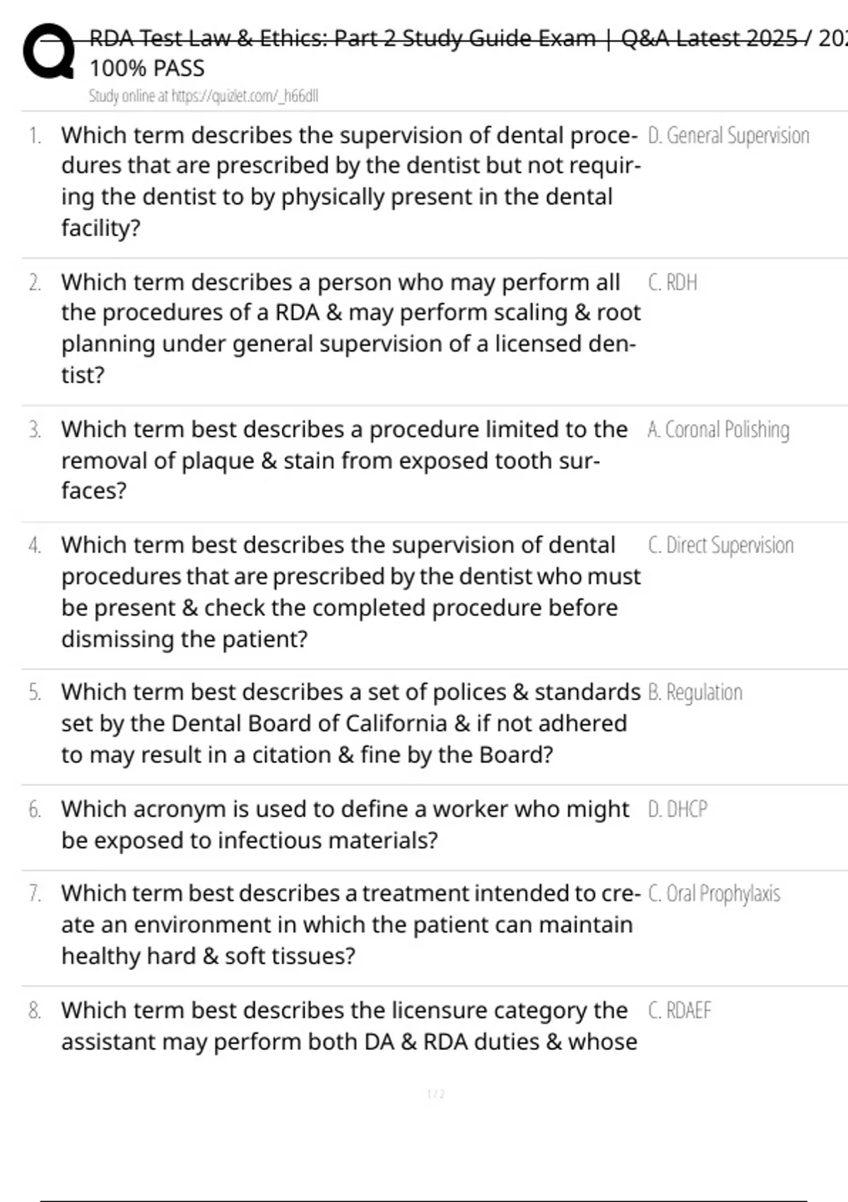 RDA Test Law & Ethics: Part 2 Study Guide Exam | Q&A Latest 2025 / 2026 100% PASS