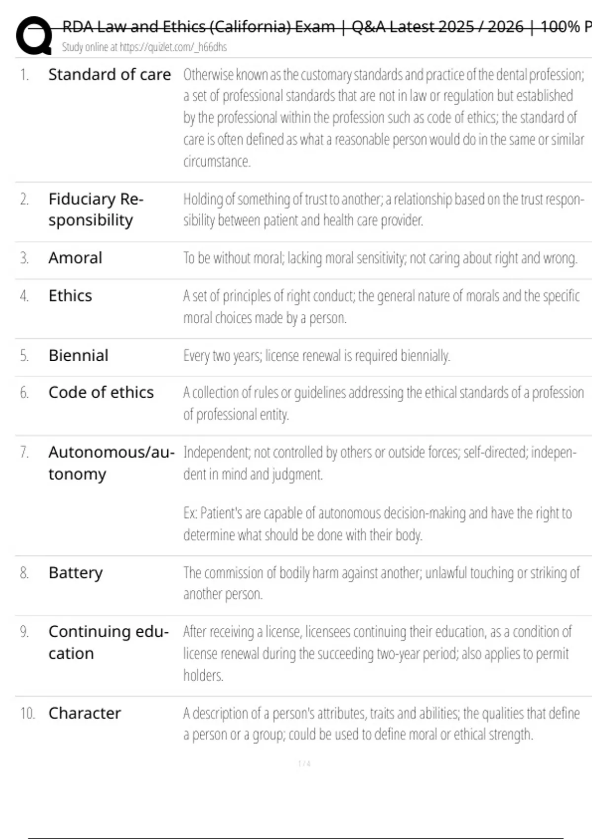 RDA Law and Ethics (California) Exam | Q&A Latest | 100% P