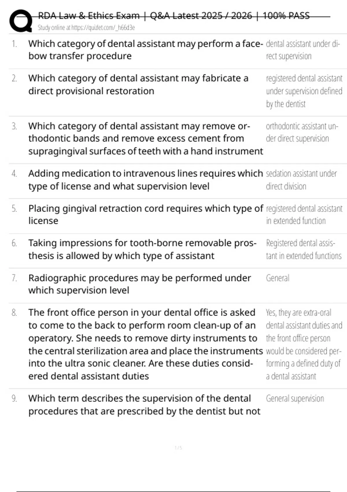 RDA Law & Ethics Exam | Q&A Latest | 100% PASS