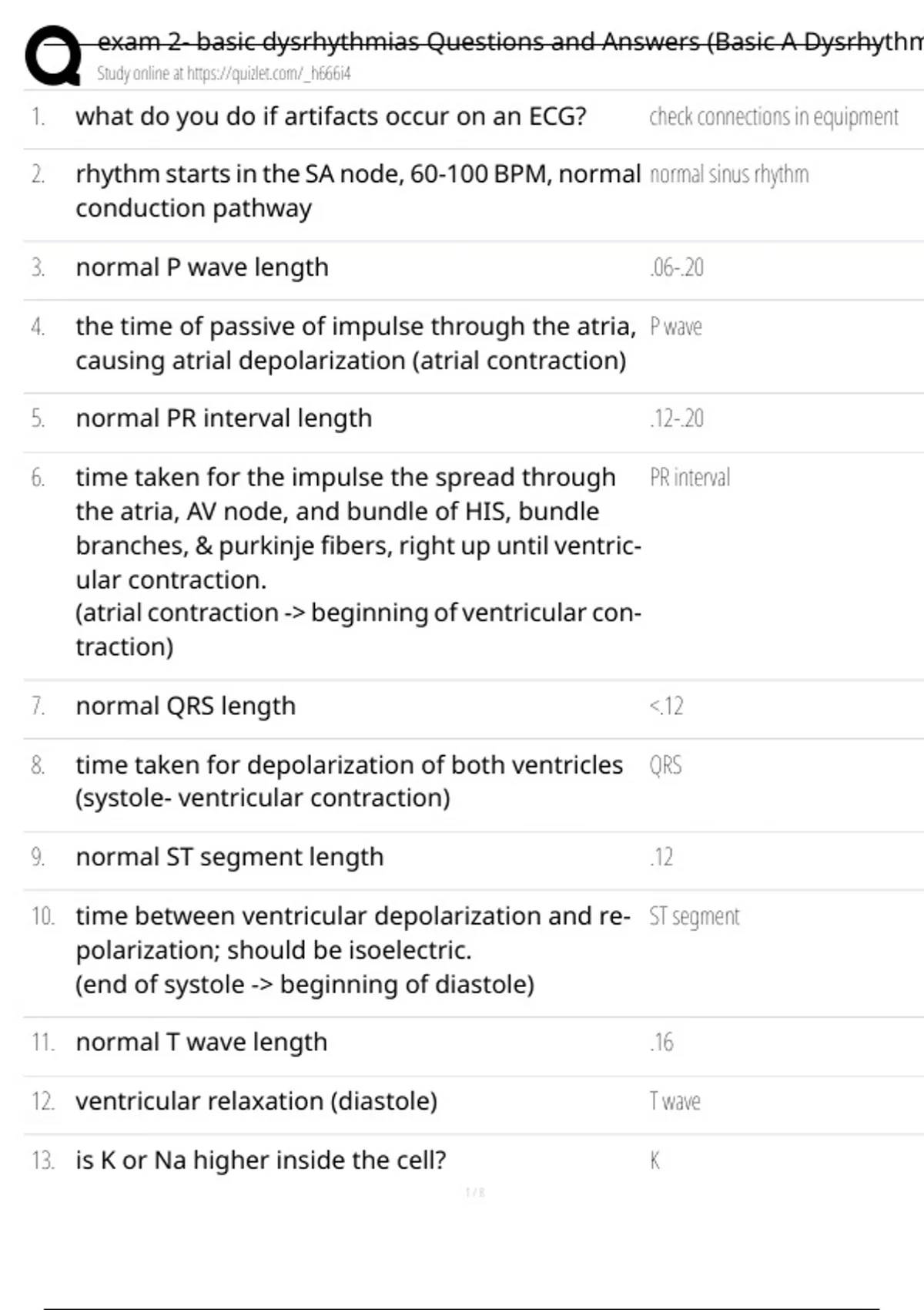 1. what do you do if artifacts occur on an ECG? check connections in equipment