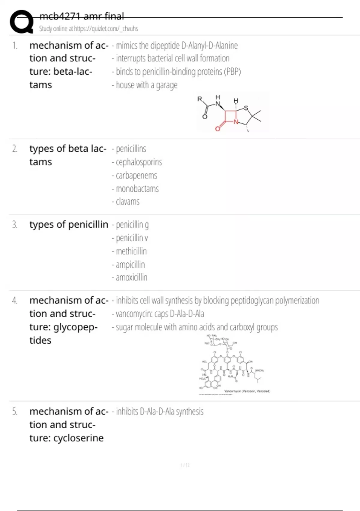 1. mechanism of ac- - mimics the dipeptide D-Alanyl-D-Alanine