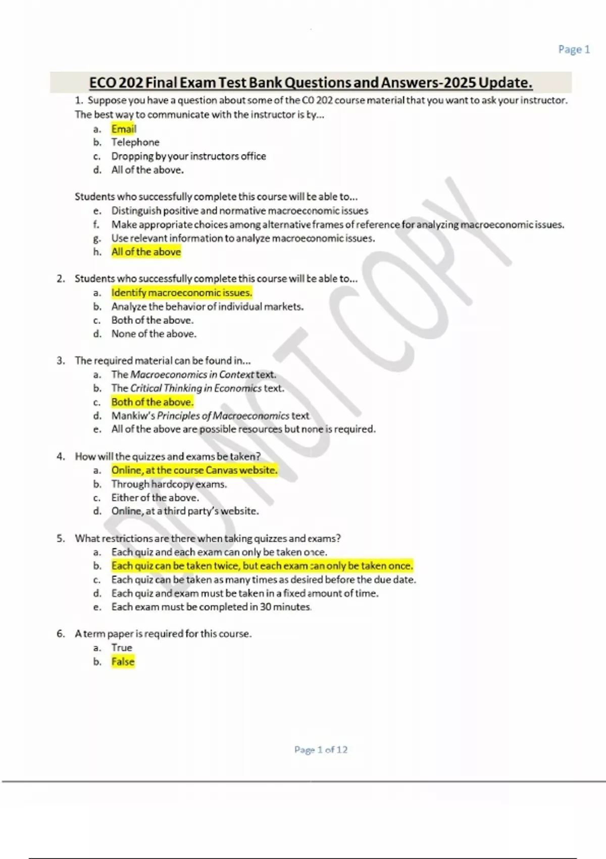 ECO 202 Final Exam Test Bank Questions and Answers-2025 Update.