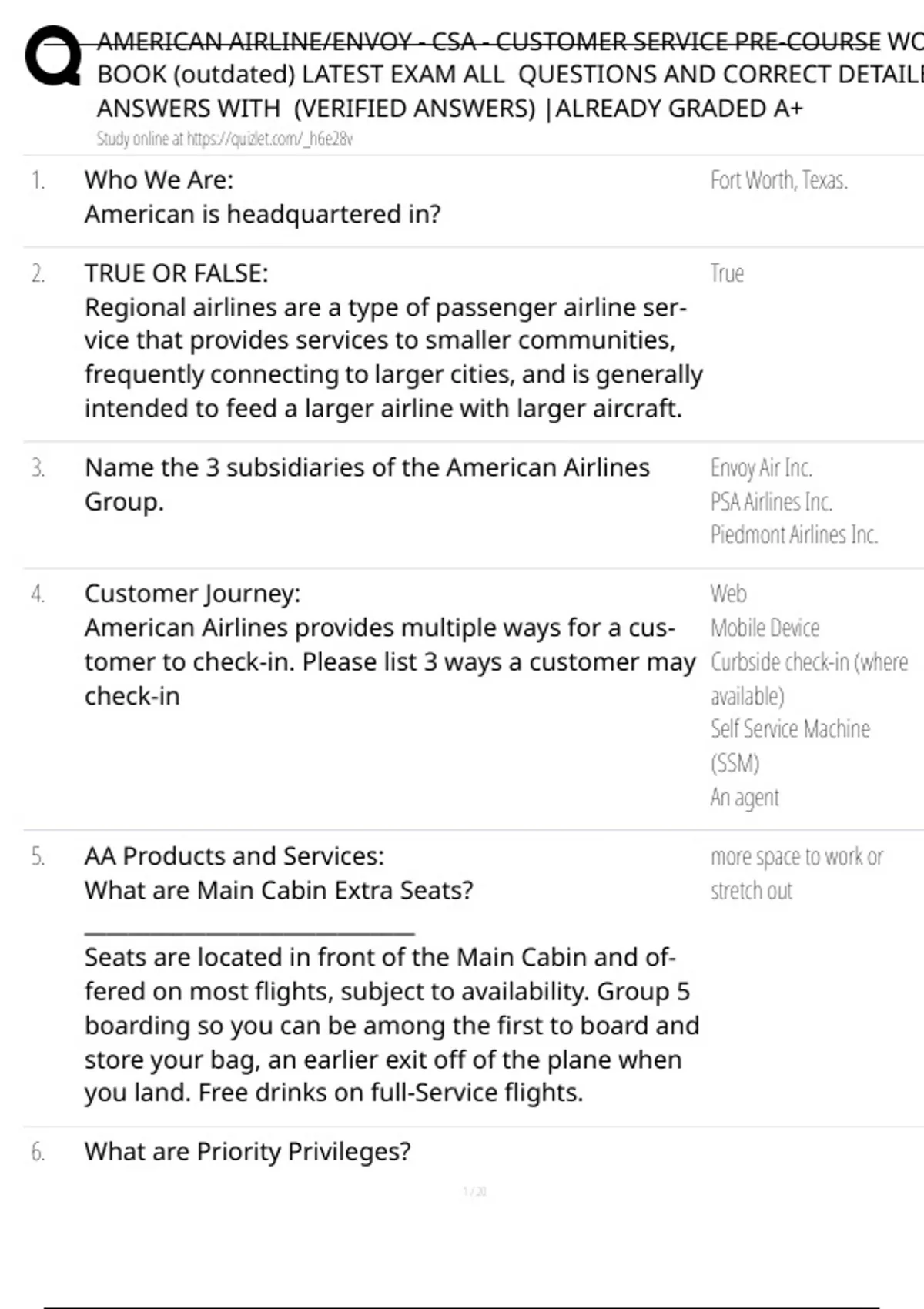 AMERICAN AIRLINE/ENVOY - CSA - CUSTOMER SERVICE PRE-COURSE WO