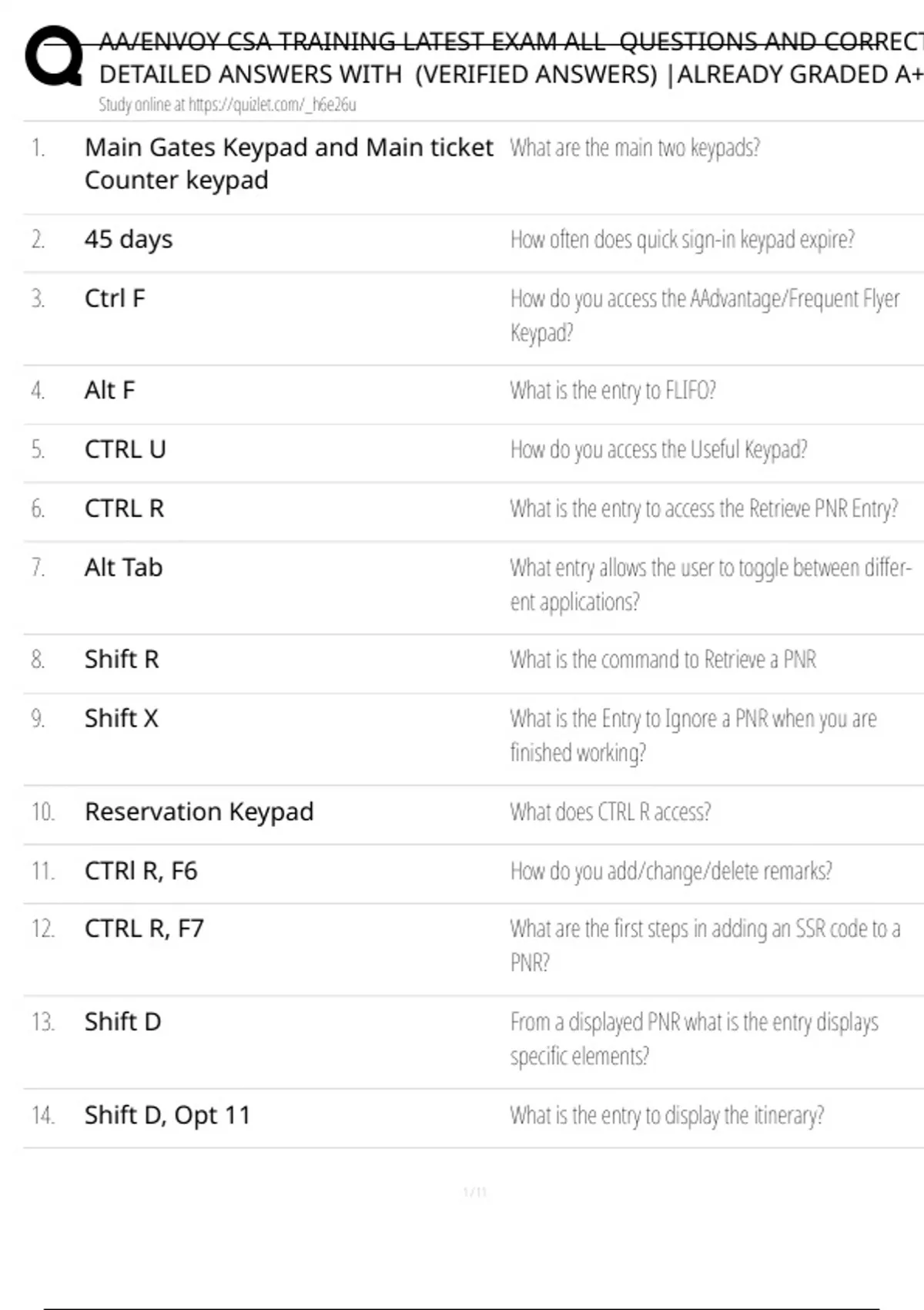 , AA/ENVOY CSA TRAINING LATEST EXAM ALL QUESTIONS AND CORRECT