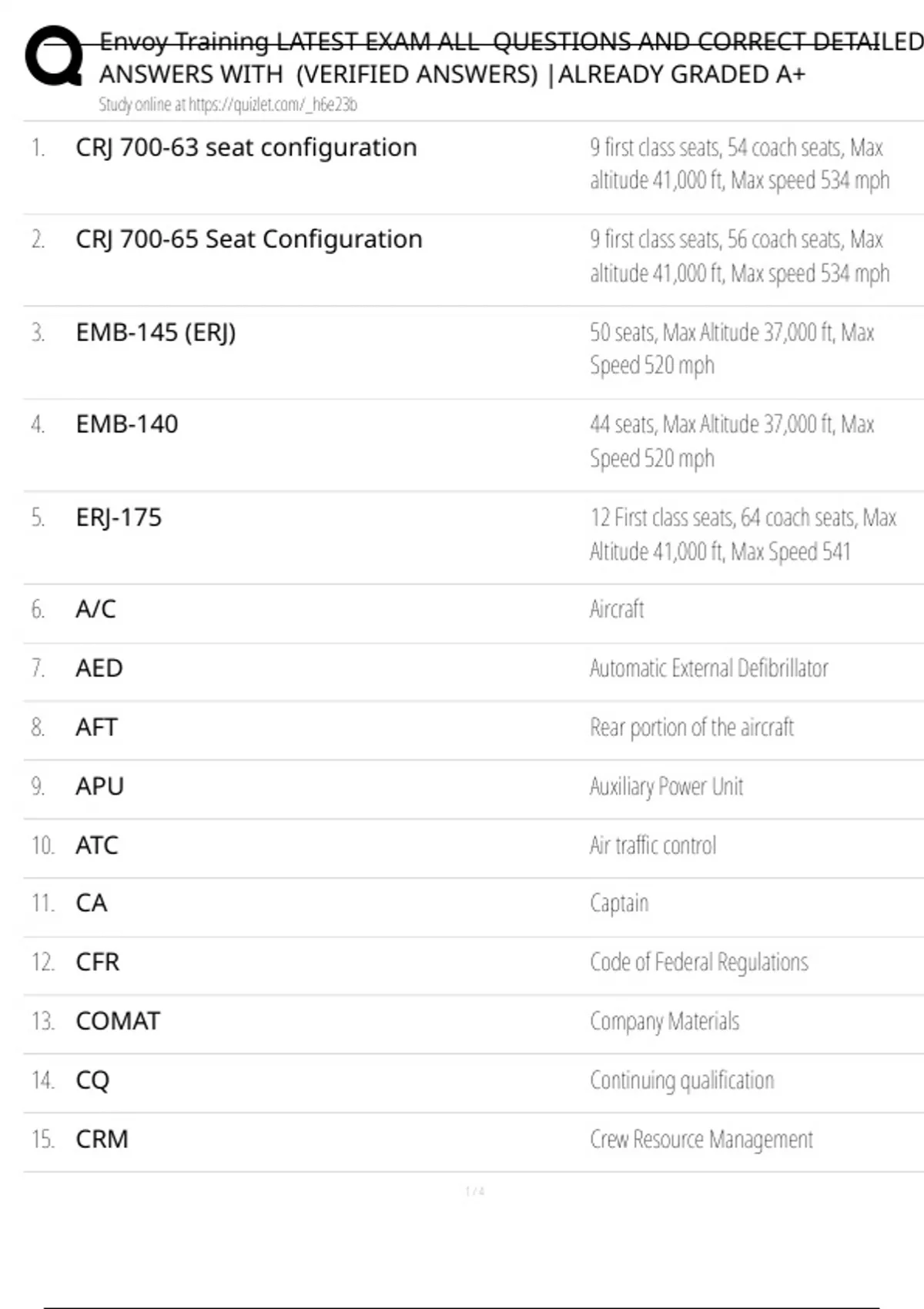 4. EMB-140 44 seats, Max Altitude 37,000 ft, Max