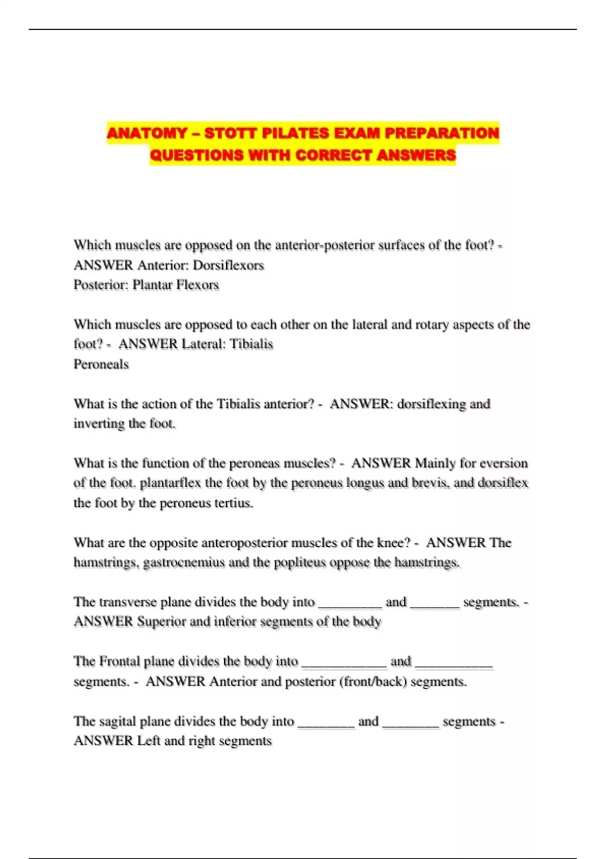 ANATOMY – STOTT PILATES EXAM PREPARATION