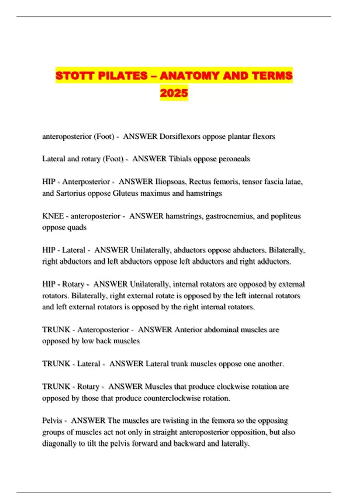 STOTT PILATES – ANATOMY AND TERMS 2025