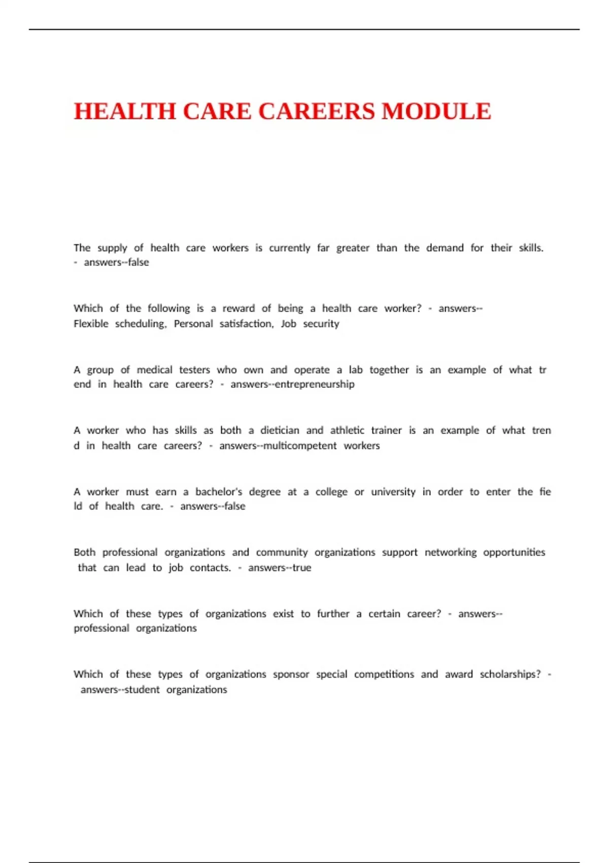 HEALTH CARE CAREERS MODULE