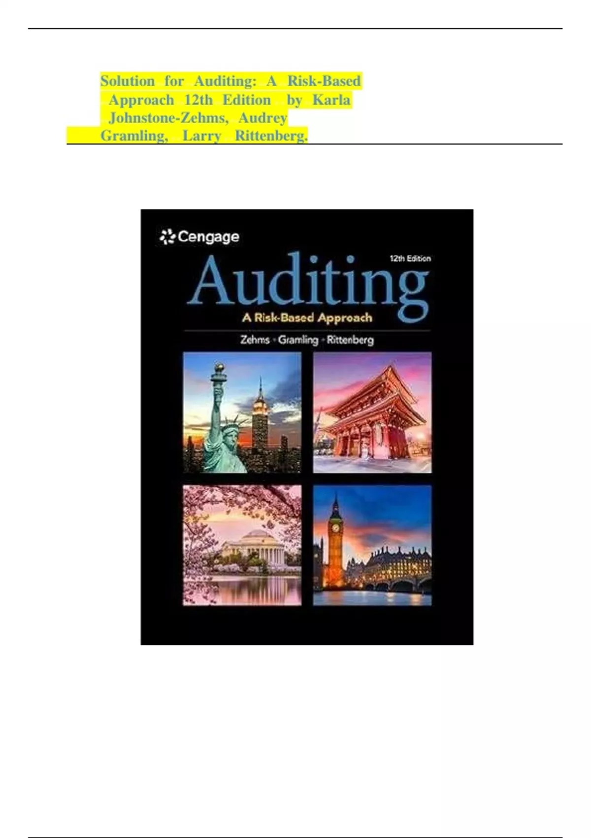 Solutions Manual For Auditing, A Risk-Based Approach to Conducting a Quality Audit, 12th Edition by Karla Johnstone-Zehms,ISBN;9780357721872,All Chapters Coverd,Complete Newest Version.||GRADED A+||.
