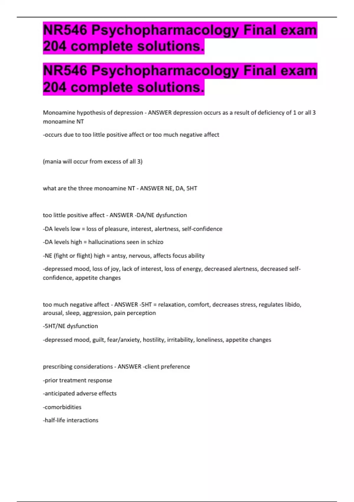 NR546 Psychopharmacology Final exam 204 complete solutions. NR546 Psychopharmacology Final exam 204 complete solutions. NR546 Psychopharmacology Final exam 204 complete solutions.